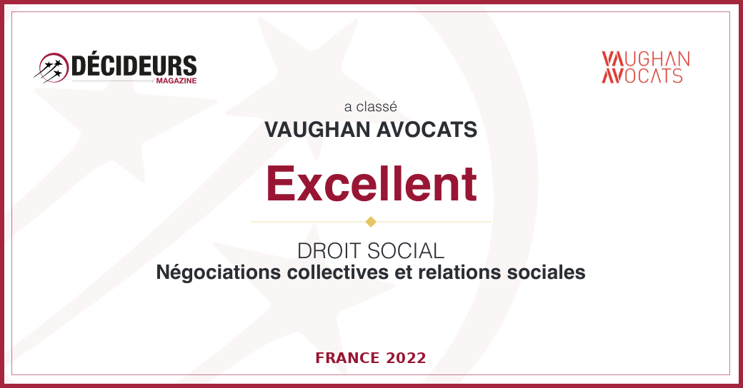(Vaughan Avocats est présent dans les classements Décideurs depuis 2015)